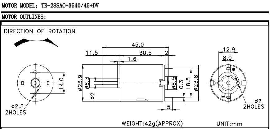 • Subject : TR-28SAC-3540 4.5V 17000rpm brush motor